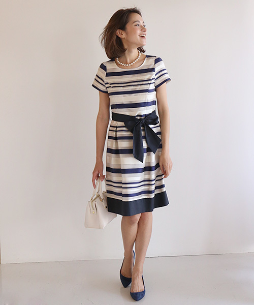 Bou Jeloud ブージュルード の 結婚式 ワンピース Made In Japanメッシュジャガードボーダーワンピース ドレス Wear